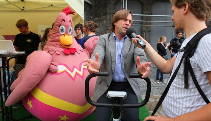 Deze zomer gaat GAIA de uitdaging aan: 2012 km fietsen doorheen tien Belgische steden. Doel : tegen 2012 alle kippen bevrijden uit de kooien. Vandaag fietst de Tour de GAIA door Blankenberge om de boycot-cot campagne voor te stellen aan het grote publiek.